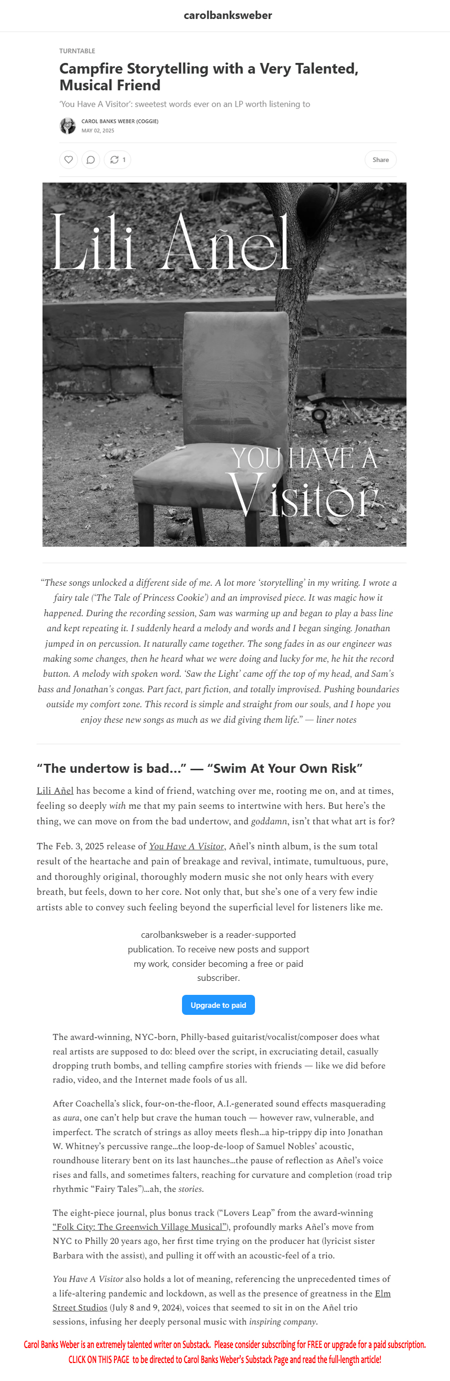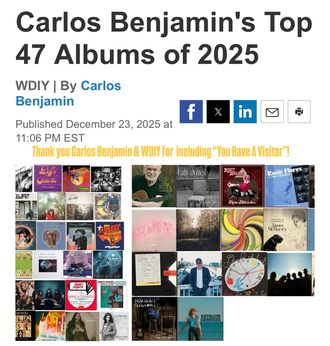 an exclusive demo of her newly penned Winter/Christmas song. Click on the image to check it out on YouTube. Enjoy! While still early now in 2026, Lili's latest release YOU HAVE A VISITOR was included on two Top albums of 2025 posts.