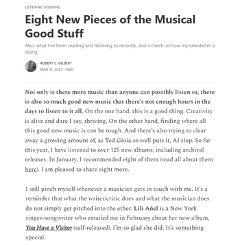 ![]() March 31, 2025 "Listening Sessions Review" Robert C. Gilbert, from Listening Sessions, gives YOU HAVE A VISITOR a rave review... Read More |